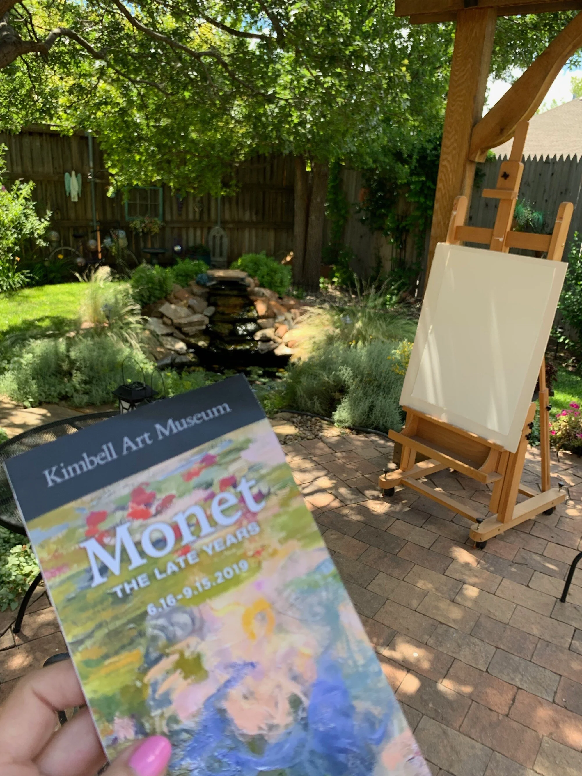 Yep, when I got home I just had to set up my easel to paint outside. I may not have a giant garden as Monet did, but there’s one teensy little water lily in our koi pond